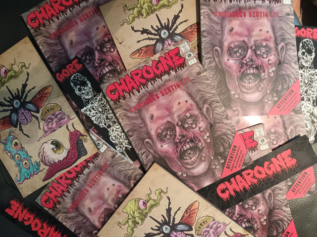 - Charogne c'est 90 pages de BDs, textes et illustrations d'horreur !